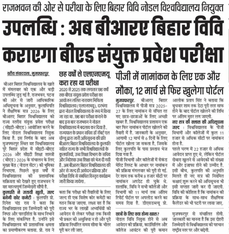 Bihar B.Ed Admission Common Entrance Test 2026: The date for the Bihar B.Ed Admission 2026 form will be released soon. Candidates wishing to pursue a B.Ed from Bihar should be informed that the application process for the Bihar B.Ed Admission 2026 entrance test is expected to begin in May 2026. For your information, several changes have been made to the Bihar B.Ed Exam 2026. This year, the Bihar B.Ed exam will be conducted by Babasaheb Bhimrao Ambedkar Bihar University (BRABU), Muzaffarpur. The application process will be released soon. For all the information related to Bihar B.Ed Admission 2026, such as age limit, application fee, syllabus, educational qualifications, etc., please read the article below.