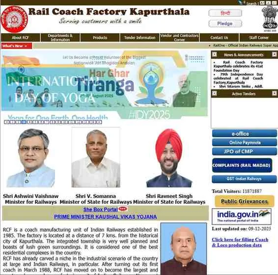• होम पेज पर पहुंचने पर, आपको अप्रेंटिस रिक्रूटमेंट सेक्शन में जाकर रेल कोच फैक्ट्री कपूरथला वैकेंसी 2025 लिंक पर क्लिक करना होगा।